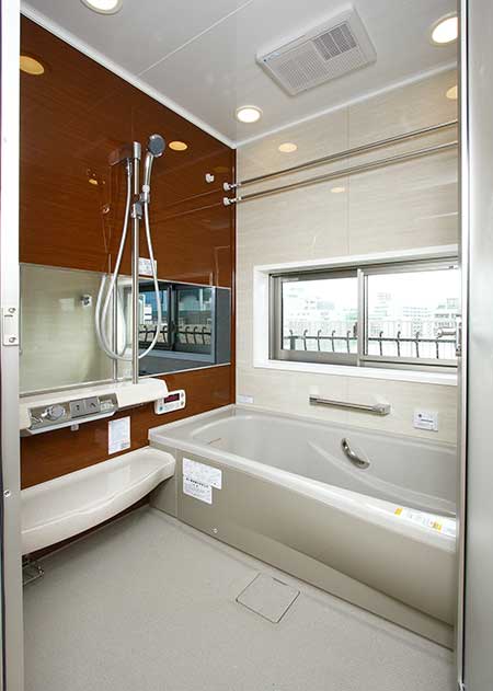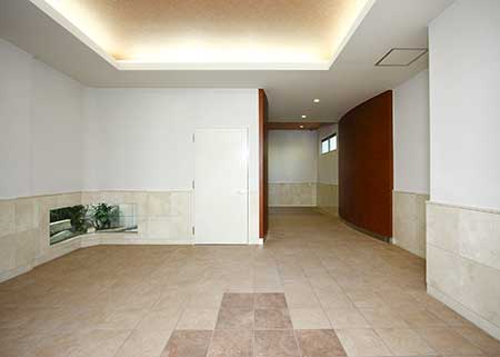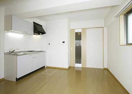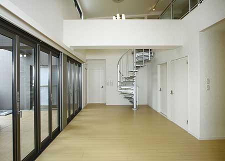 「エコロジーアンドユビキタス」をテーマにした賃貸ルネスマンションです。新大阪の立地を考えて9階建ての中に、賃貸住宅48戸、事務所4戸、オーナー様の居宅を含めて建築しました。共用部には、屋上緑化や風力・太陽光発電を取り入れ、また、各住戸の玄関ドアには電子錠を設置し、入居者が携帯電話でも施錠できるようにしています。ルネス工法もそうですが、通常の賃貸マンションにはない設備が充実しており、大きな差別化を図っています。