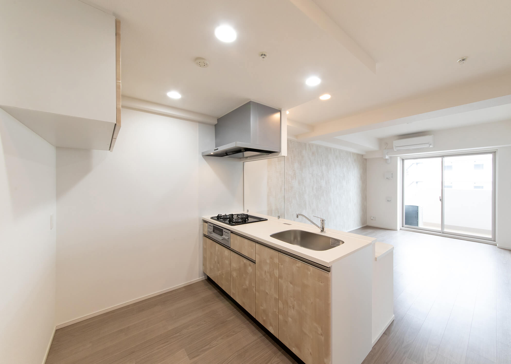 長期入居のポイントとなる収納にも気を配り、LDKタイプのお部屋には大容量のウォークインクローゼットやシューズクロークを用意しました。また、カウンターキッチンの設置により調理の動線が効率的になり、家事の時短を実現、カウンターテーブルをあらかじめ備えておくことで食卓を購入・配置する必要が無く、リビングを広々と利用できることもアピールポイントの一つとなっています。