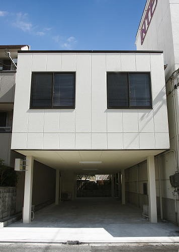鉄骨造2階建ての駐車場付事務所です。 1階を広い駐車スペースとし、従来の事務所と行き来が出来るように工夫されました。 限られたスペースで広々とした空間に仕上がりました。