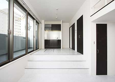 こちらのマンションは、「レオンコンフォート」マンションシリーズで、お施主様の理念の「入居者には誇りを感じていただきたい」の通り、非常に高級感のただようマンションとなりました。ルネス工法によって、様々なタイプの1ルームのお部屋があり、DEN(書斎)の部屋や、ダイニングとリビングにスキップフロアのあるお部屋などが特徴的です。特に9階の1LDKのお部屋には、リゾートホテルを思わせるようなバスで、優雅さや高級感があります。