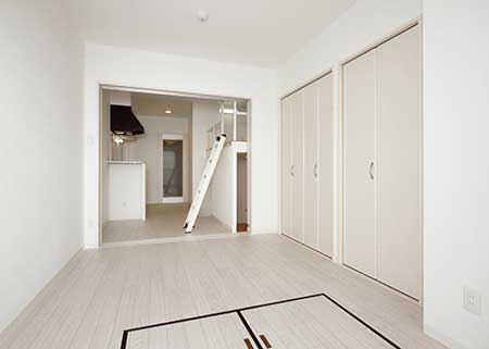 1K~1DKのお部屋で、全戸ルネス工法を採用しているので、床下収納によるスペースがあります。またお部屋によってはDENによる、書斎スペースもあります。