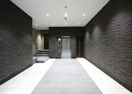 地下1階、地上8階建てのワンルーム賃貸マンションです。 1Kのお部屋が39㎡以上とまるでファミリータイプのような広さで、一部屋ごとにお部屋のタイプも違い、魅力的な物件となりました。 エントランスホールの色合いがシックで素敵です。