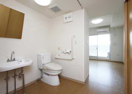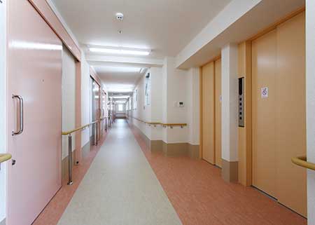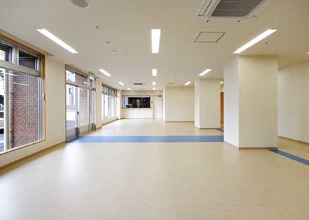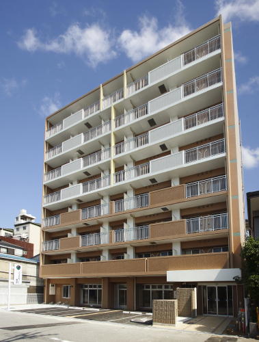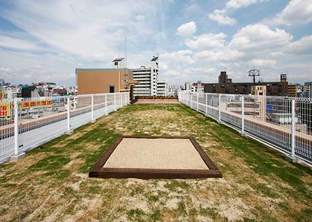 保育所付き賃貸ワンルームマンションの「ドルチェヴィータ難波」、デイサービス付き高齢者マンションの「クリスタルコート難波南」、そして、診療所付き高齢者用グループホームの「さくらんぼ医療ビル」。3棟を隣接させた信和建設の開発複合プロジェクトです。 その中で、「クリスタルコート難波南」は、住宅型有料老人ホームの指定を受けた施設で、1階には広い食堂と入浴施設があり、2階から8階は全室が南向きの日当たりの良い高齢者用住宅になっています。屋上には花壇と広い芝が広がっており、高齢者の方の癒しの空間となっています。屋上広場からは難波の町が一望できます。