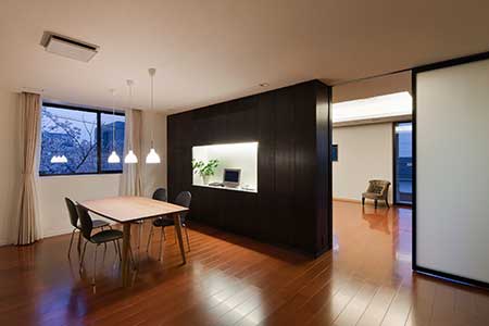 鉄筋コンクリート造3階建ての注文住宅です。 全館空調、外断熱仕様で、365日24時間 設定した温度・湿度・換気を自動で管理しているので一年を通じて家中全体が快適に過ごせる空間になっています。 また、老後の事も配慮しバリアフリーはもちろん、ホームルームエレベーターが設置してあります。 設備については、照明デザイナーによる器具選びや配置プランを採用しリビングはボタン一つで様々なシチュエーションにあった雰囲気が演出できます。リビングダイニング、書斎、玄関、階段、木製建具、収納は全て備え付けで細部にこだわった唯一無二のフルオーダー家具です。 オーナー様のエコロジーに対する趣向を凝らした住宅です。