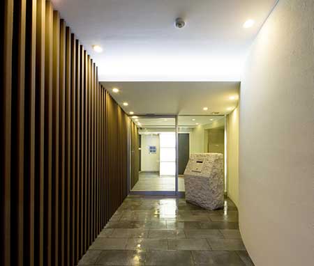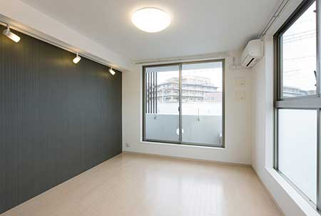 鉄筋コンクリート造によるデザイナーズ賃貸マンションです。 この物件は、壁式構造のため、柱型がなく、また天井高も2.8メートルから2.9メートルあり、かなり空間が広く感じられます。 賃貸マンションには珍しく、すでに「天井照明器具」が完備されているのも特徴です。