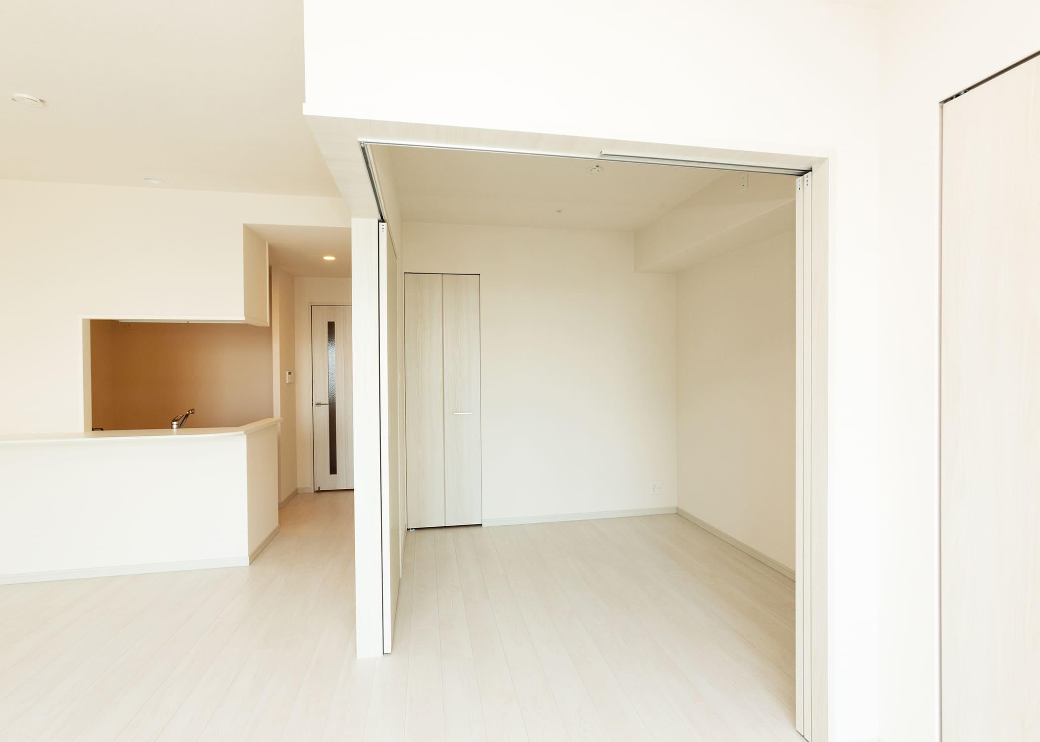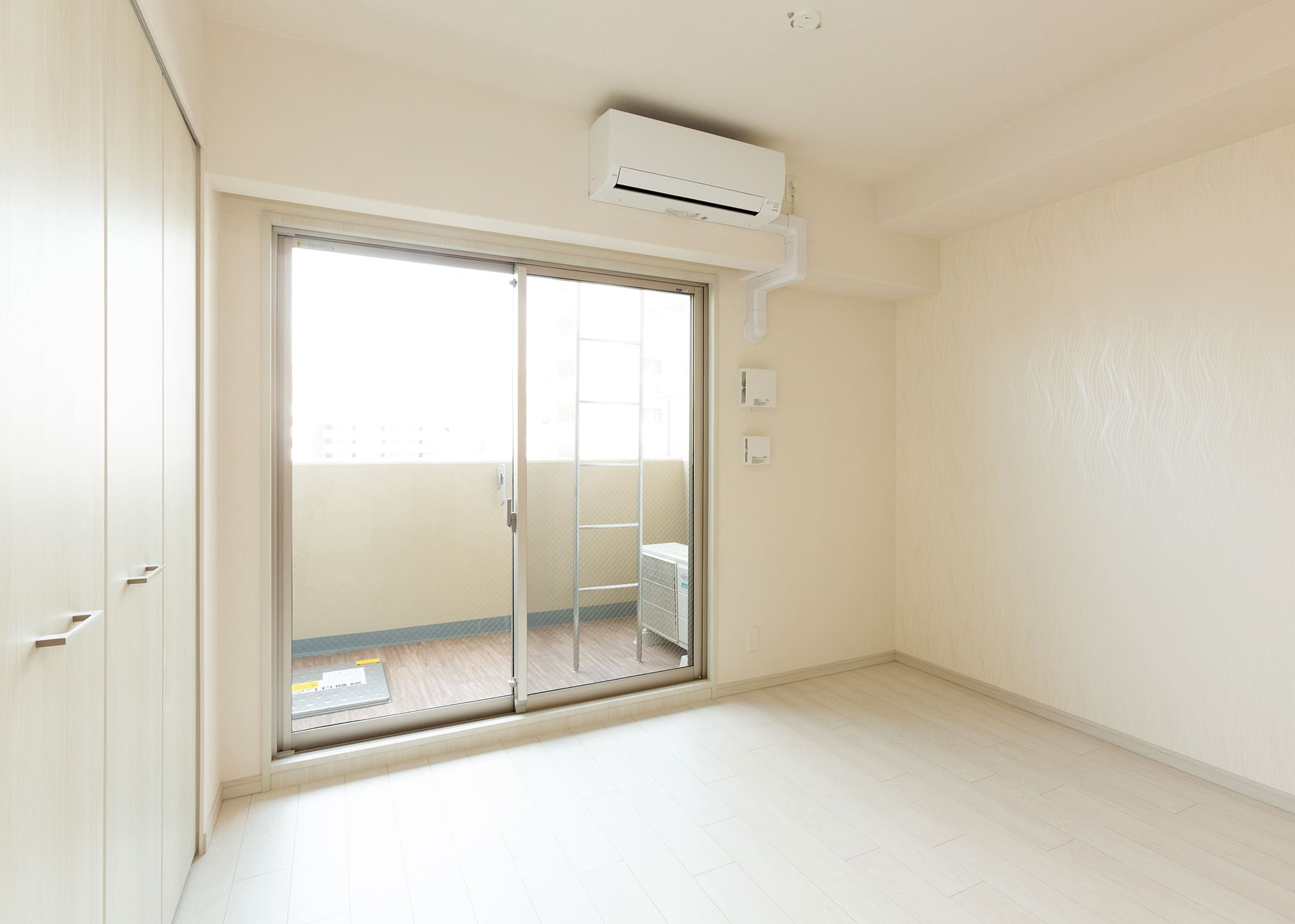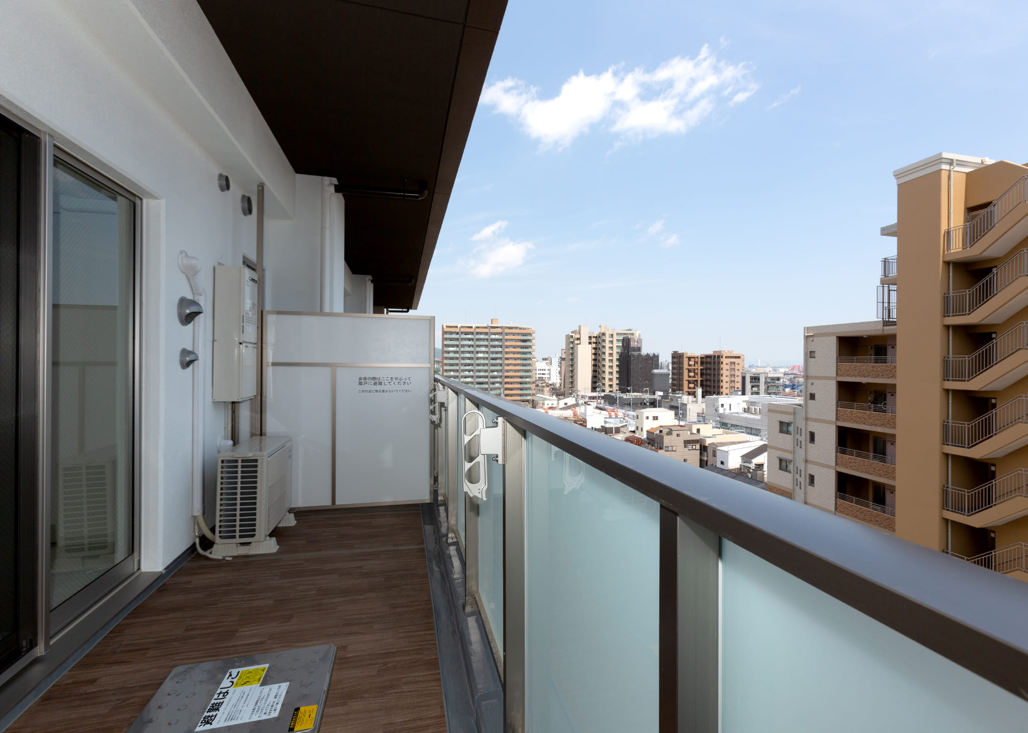各階のバルコニーは南東方面に向いているため、たっぷりと日差しが届く明るい室内です。内装は白色でまとめたことで、より室内が明るく映え、シンプルな内装は入居者の多様なインテリア趣向に沿うことができます。バルコニーにはウッドパネルを敷設しましたので、天気の良い時には椅子やテーブルを置いてリビング代わりに、ゆっくりとくつろいでいただくことができます。